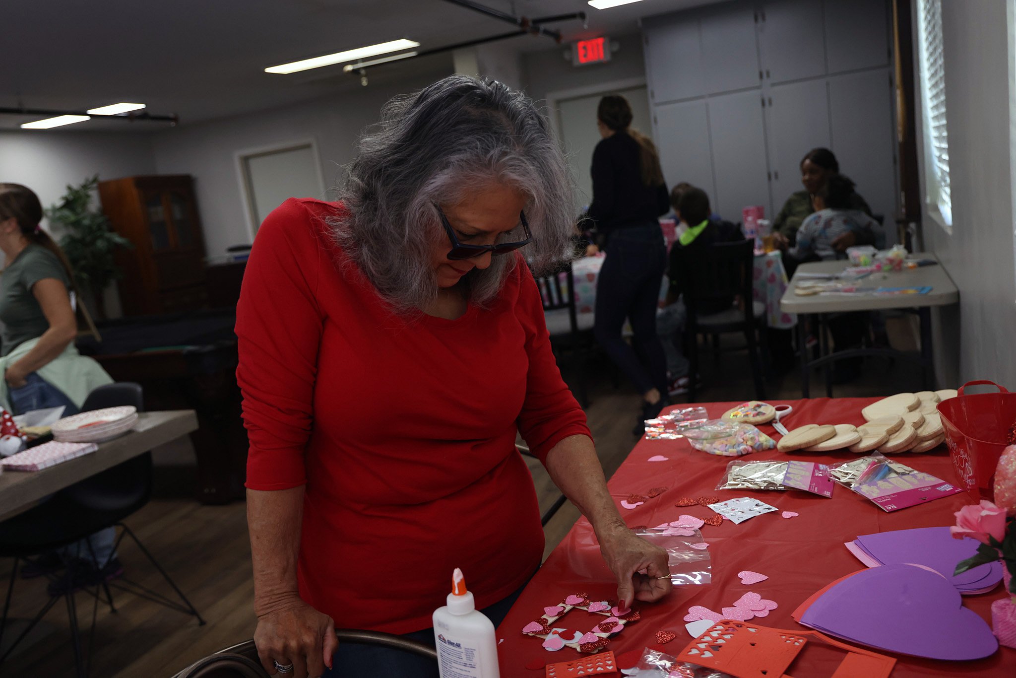 Herminia King, attendee of The Singletons Care Day, making an art craft on Saturday, Feb. 17, at The Singletons care facility in Phoenix, Arizona. King has stage one breast cancer.