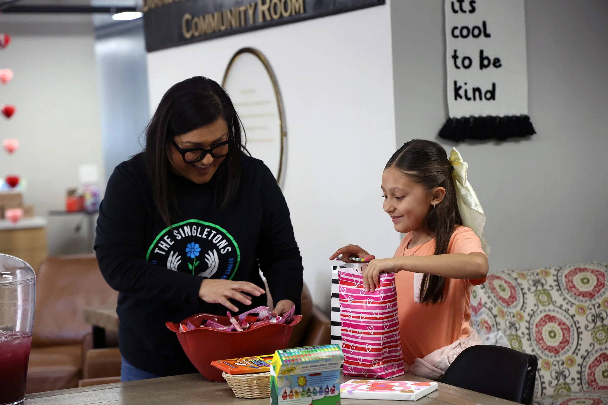 Kids grab snacks for their parents on The Singleton Care Day on Saturday, Feb. 17, at The Singletons facility in Phoenix, Arizona.