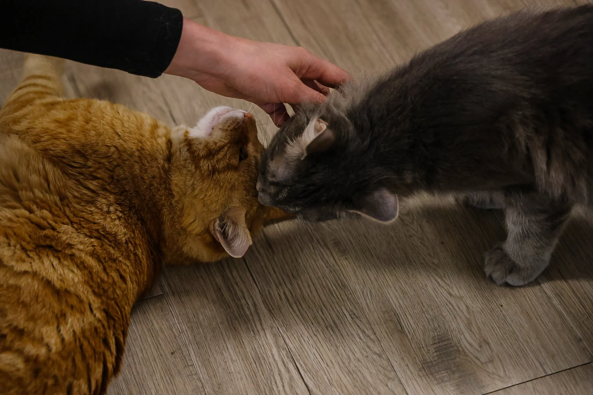 Cats sniff each other at the Kitty Pause Kitty Café on Feb. 28, 2024, in Mesa.